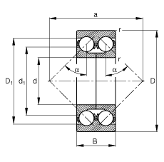N Basic dynamic load rating, radial Type: Angular contact ball bearings |